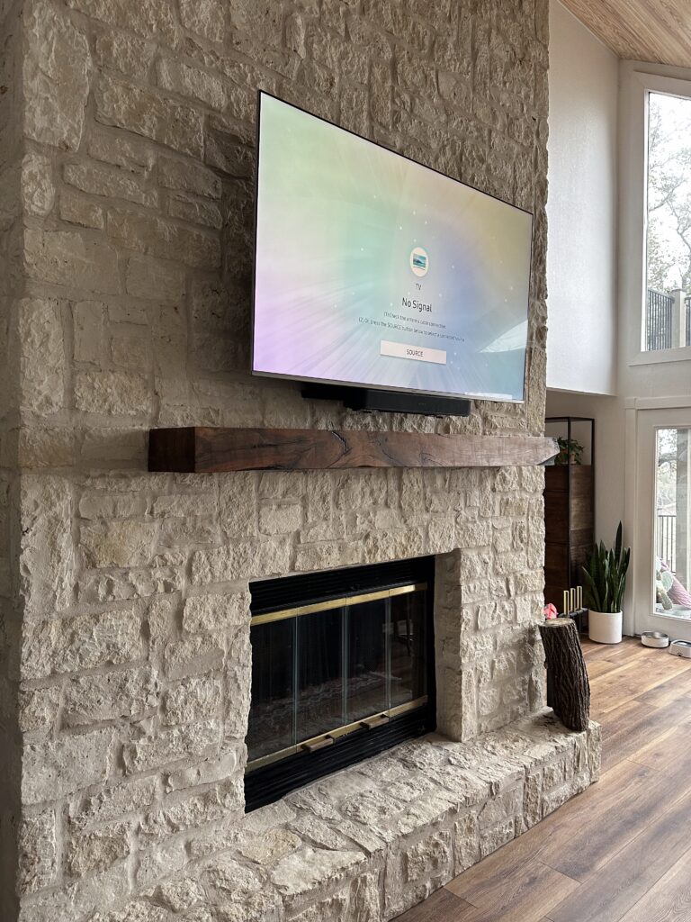 Our team recently completed a stunning 75-inch Samsung TV and Sonos Beam soundbar installation for a homeowner in Spicewood, Texas. Located in the Texas Hill Country just northwest of Austin along Lake Travis, Spicewood is known for its beautiful lakeside properties, scenic Hill Country views, and upscale homes. This before-and-after transformation showcases our expertise in delivering clean, professional TV mounting and home theater installations throughout the greater Austin area.