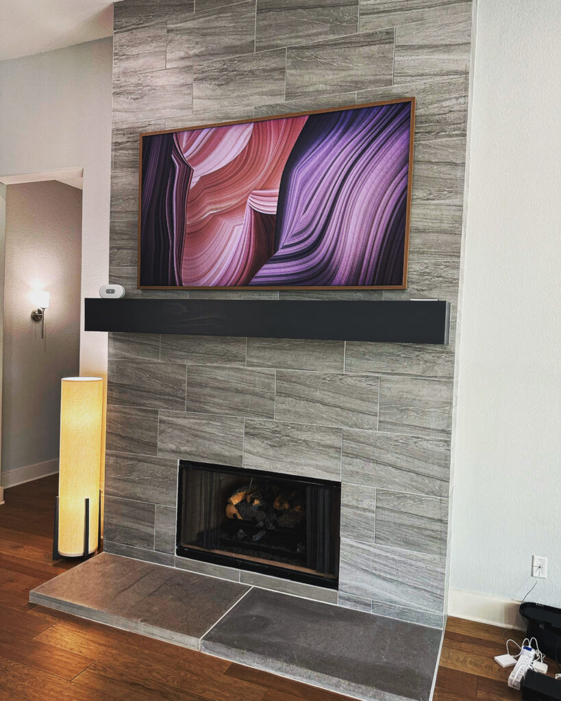 65″ Sony into Tile Fireplace TV Mounting Installation – West Lake, TX – December 2025