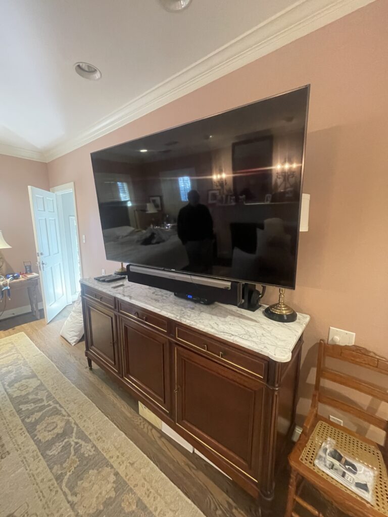 The customer was ready to leave their old TV and Sonos system behind and step into a serious upgrade. We swapped out the existing setup and replaced it with a Samsung QLED TV for stunning 4K picture quality and a brand new Sonos Beam soundbar for clean, room-filling audio that’s a massive improvement over the old system. The before and after on this one speaks for itself — what was once a dated setup is now a sleek, modern entertainment wall that completely transforms the room. All cables were professionally concealed for a clean, finished look the homeowner in Leander absolutely loved.